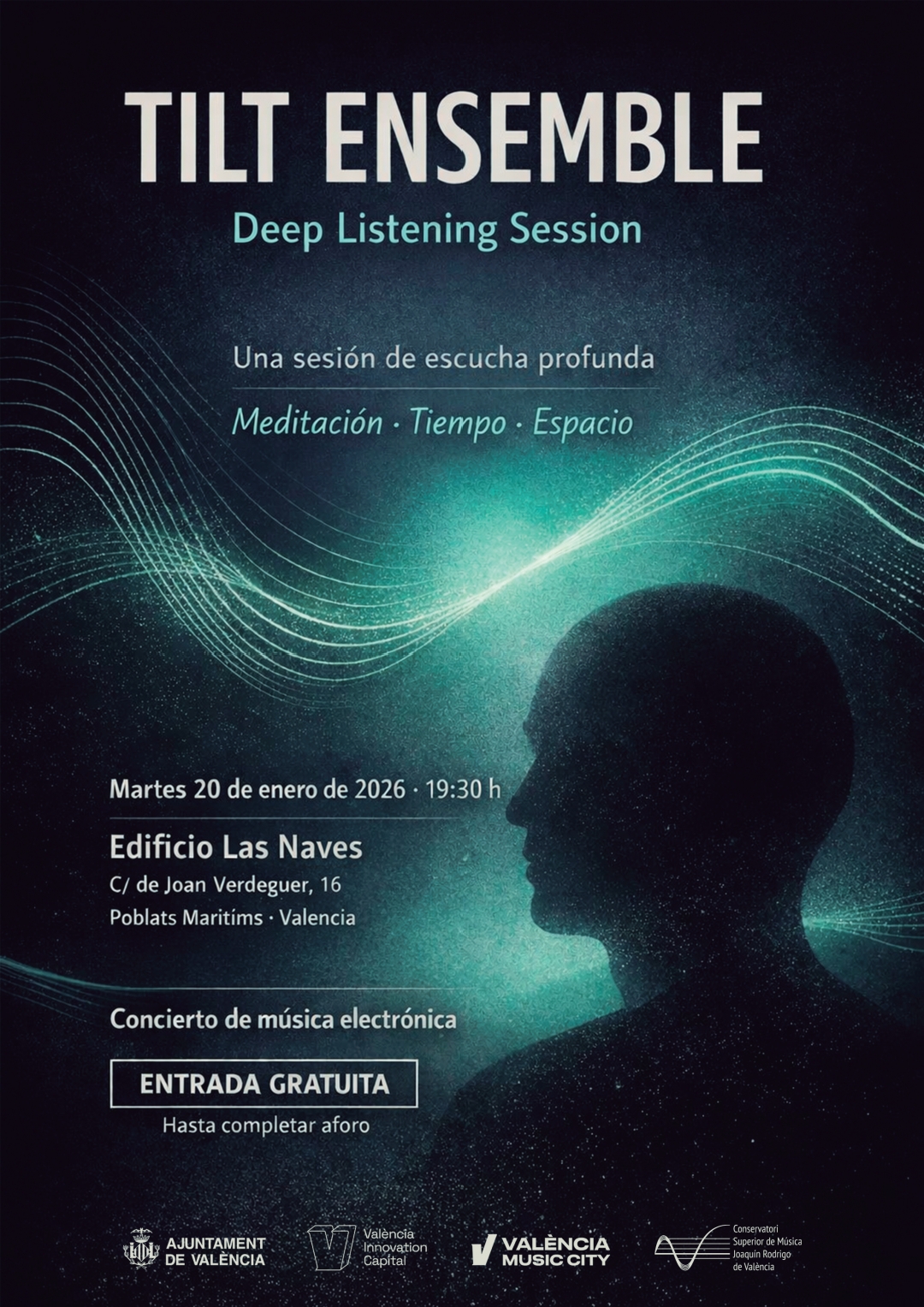 En el marco de Sono·lab, el laboratorio de València Innovation Capital, el próximo martes 20 de enero Las Naves acoge un concierto de música electrónica a cargo de Tilt Ensemble, con la presentación de la obra Deep Listening.