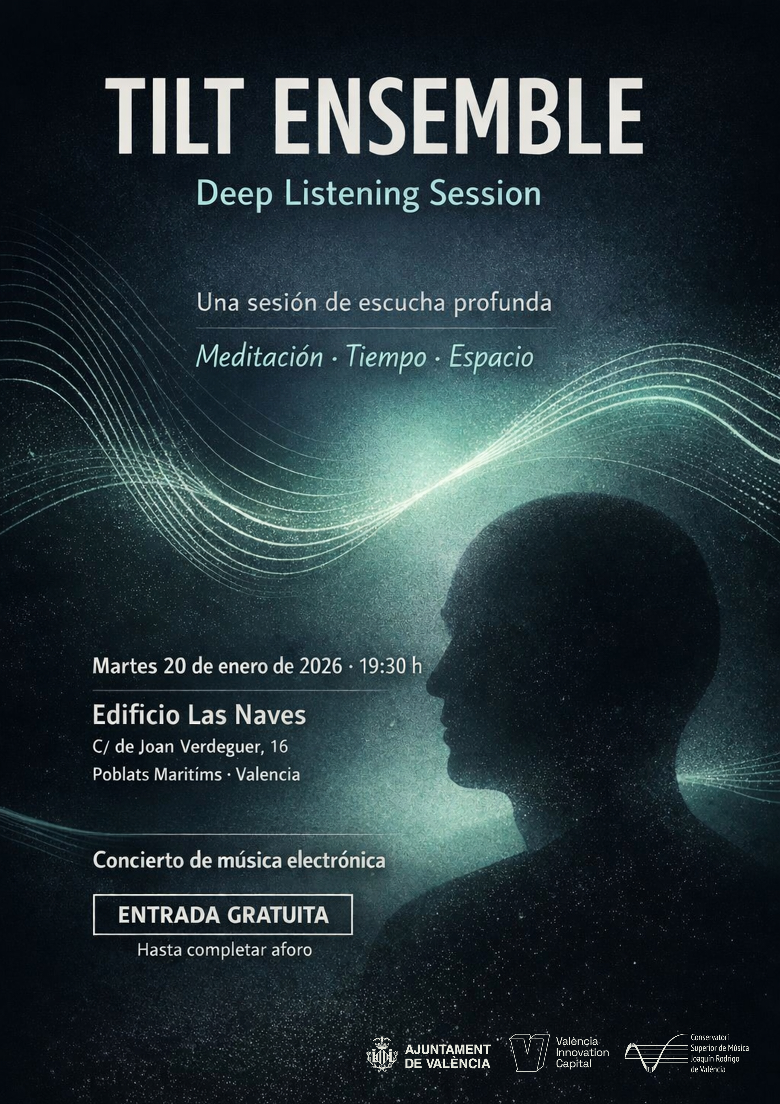 En el marc de Sono·lab, el laboratori de València Innovation Capital, el pròxim dimarts 20 de gener Las Naves acull un concert de música electrònica a càrrec de Tilt Ensemble, amb la presentació de l’obra Deep Listening.