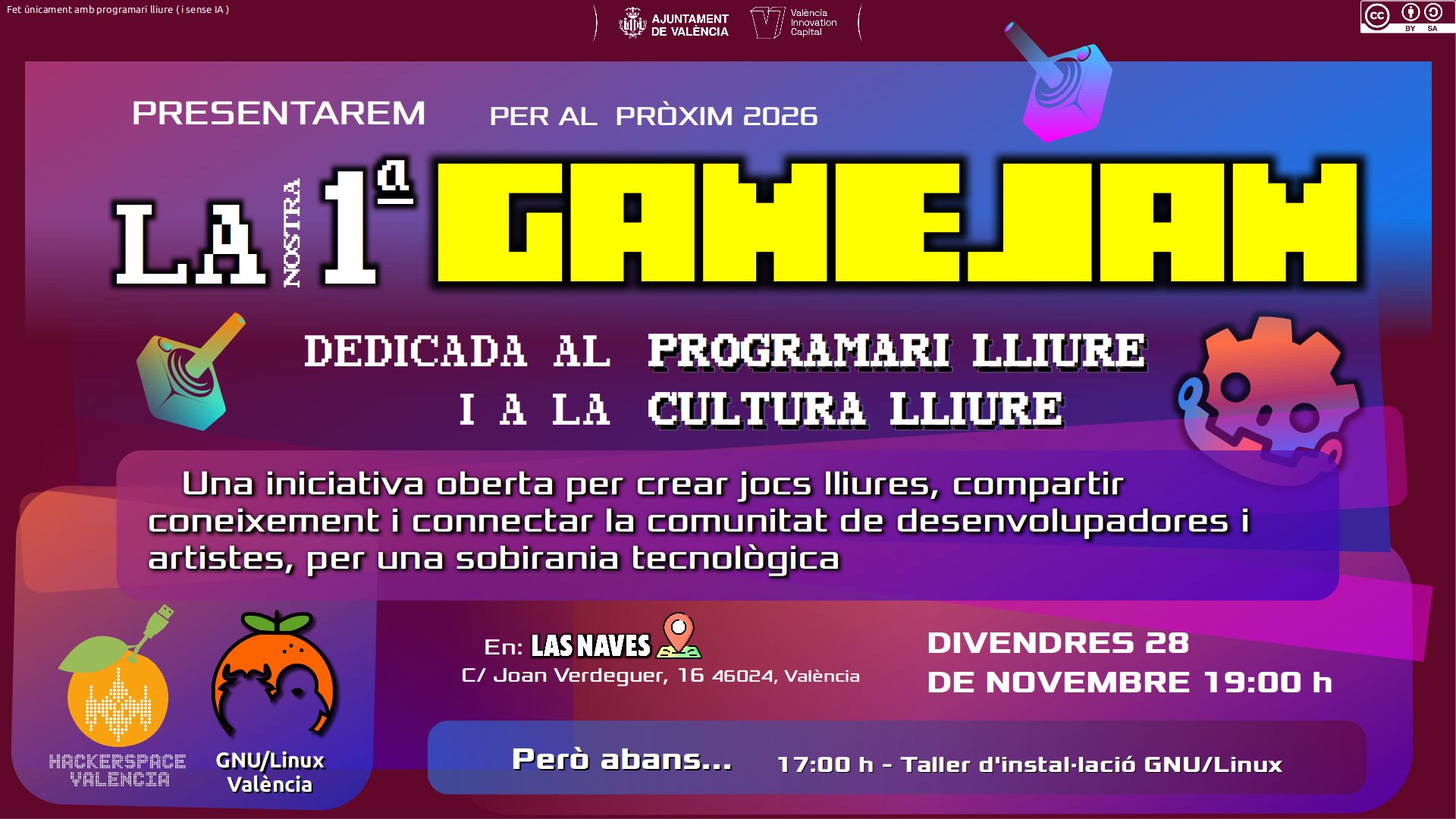 - Jornada «Hablemos» de GNU/Linux València incluye en este 2025 un taller de ayuda. Presentaremos la ¡1ª GameJam libre valenciana!