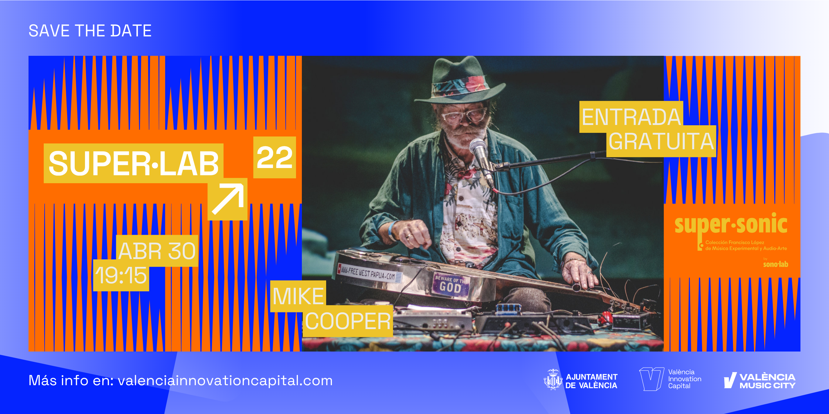 El cicle d’actuacions en directe de música experimental i art sonor Super·lab, impulsat per Sono·lab —el laboratori d’investigació sonora de València Innovation Capital—, celebrarà la seua 22a edició el dijous 30 d’abril a les 19:15 hores a Las Naves amb l’actuació del músic i artista visual britànic establit a València Mike Cooper.
